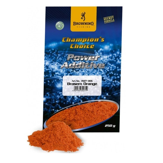 Aditiv Browning Champion s Choice Power Additive Brasem Orange 250gr/spanAtractantii sub forma de pudra au devenit indispensabili in pescuitul de competitie. Iti permit sa schimbi aroma si gustul unei nade fara ai afecta mecanica, ceea ce un lichid nu o poate face. Acesti aditivi au fost creati de catre specialistii nostri dupa ani de studii si testari. Tot ce ai de facut este sa profiti de experienta lor prin folosirea acestui produs, iar rezultatele nu vor intarzia sa apara./span