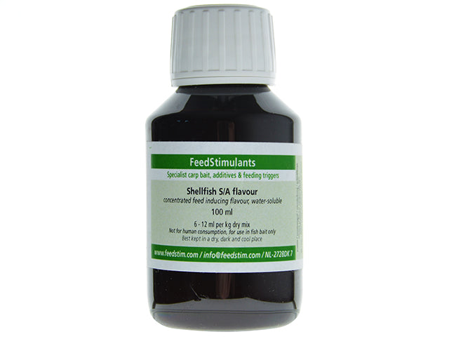 Aroma FeedStimulants Shellfish SA Flavour - 100mlAroma concentrata de dude pe baza de glicol.Deoarece aceasta aroma este solubila in apa, se va dispersa rapid in jurul momelii si va atrage crapii.Caracteristicile produsului: lichid limpede, aroma dulce de dude, nu contine alcool etilic, solubila in apa, nu dizolva materialele PVA.Va recomandam sa folositi intre 6 si 12ml pe kg de mix.Cantitate: 100ml