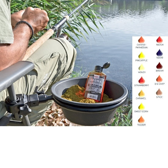 In 12 variante de arome acest produs este destinat in special pentru a aditiva groundbaitul dar poate fi folosit cu succes si pentru seminte sau pelete. Pentru a spori atractivitatea pote fi folosit in combinatie cu arome praf din gama Carp Zoom Aroma Plus. Se recomanda a se folosi 200ml/5-10kg de groundbait. Cantitate: 200ml.