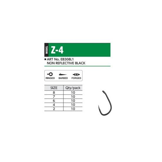 CARLIGE HAYABUSA Z-4 NONREFLECT NR 6 10 BUC Carlige rezistente, ideale pentru pescuitul crapilor de talie mare. Caracteristici:- Carlige cu deschidere mare;- Realizate prin forjare;- Micro-spin;- Ochet;- Culoare: Non Reflective Black;- Cantitate: 10buc/plic.Mai multe informatiiMarime carlige 8Model carlige crap Z-4 Non ReflectProducator Hayabusa