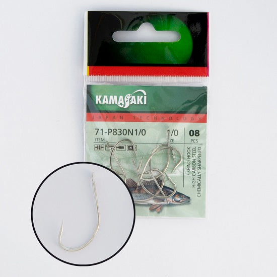 CARLIGE KAMASAKI P830N NR 2/0/span Cârlige realizate cu tehnologie inovativă, Kamasaki 830N sunt cârlige cu formă clasică, realizate din otel. Datorită formei lor cârligele acestea pot fi flosite pentru pescuitul crapului sau chiar şi al răpitorilor de talie mare precum somnul./span Oţelul din care sunt realizate le conferă o rezistenţă remarcabilă, durabilitate a vârfului ceea ce asigură o înţepare mereu promptă. Aceste cârlige sunt finalizate cu paletă atent finisată pentru a nu deteriora firul în timpul pescuitului./span