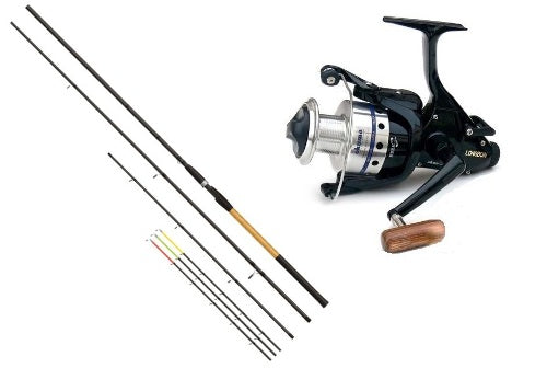 Lanseta Okuma Solitron Feeder 3.60m, 50-100g, 3+3buc Construita pe un blank slim din carbon IM6, lanseta de feeder Okuma Solitron dispune de actiune puternica, ideala pentru aruncarea cosuletelor sau momitoarelor la distante mari si garanteaza drill-uri de neuitat, la finalul carora veti putea sta mandri cu capturile in fata aparatelor de fotografiat. Datorita actiunii progresive si a faptului ca lanseta Solitron se comporta foarte bine si in apele curgatoare, va fi alegerea ideala a pescarilor care cauta mrenele sau clenii bataiosi in apele rapide ale raurilor. Lanseta vine echipata cu 3 varfuri de carbon avand urmatoarele caracteristici: verde-ligt, galben-medium, rosu-heavy. Caracteristici:Lungime: 3.90m;Putere de aruncare: 50-100g;Actiune: progresivaNr. Tronsoane: 3+3;Inele: oxid de titan;Greutate: 255g;Blank: carbon 24T;Maner: pluta + EVAHusa de transport: da.Mulineta Okuma Longbow BaitfeederO mulineta deosebita echipata cu Baitrunner, frana performanta si galet supradimensionat. Are un design aparte datorita manerului finisat cu lemn.Caracteristici:Rulmenti: 5 Rulmenti de otel + 1 Rulment la galet;Raport recuperare: 4,5:1;Tambur de aluminiu;Tambur de rezerva de grafit;Frana sistemului feeder microreglabila;Manivela finisata cu lemn;Greutate: 495g;Capacitate tambur: 0.40mm/240m;Recuperare la o tura: 80cm;