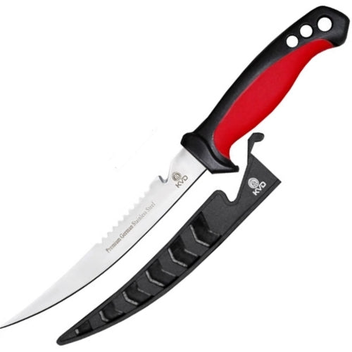Un cutit de filetat marca Mustad KVD. Are lama tratata impotriva oxidarii, cu teaca de plastic pentru protectie.