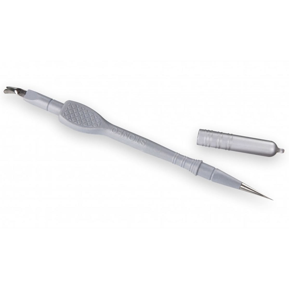 Cutter de Precizie StonfoUnealtă echipată cu o lamă specială în V, care permite tăierea rapidă și precisă a firului. La celălalt capăt, unealta este echipată cu un ac scurt și ascuțit, din oțel inoxidabil, util la legare.