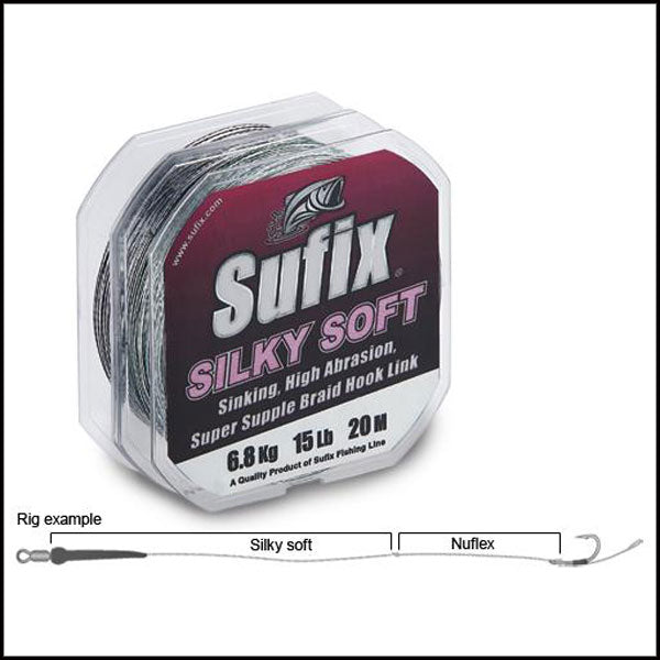 Sufix Silki Soft este un fir foarte moale si catifelat ce are o densitate mai mare ca cea a apei, lucru ce permite monturii sa se muleze pe fundul apei si sa permita o prezentare foarte naturala a momelii. Acest fir de diametru foarte mic este fabricat din fibre Dyneema, ofera o rezistenta foarte mare la tractiune si inalta rezistenta pe nod.