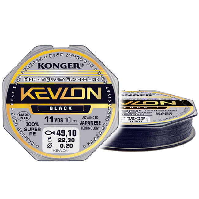 Fir Textil Konger Rigging Line Kevlon X4 Black 0.14mm, 14.5kg, 10mRigging Line Kevlon X4 este un fir textil de inalta clasa, cu rol de leader, un echilibru perfect între rezistență, calitate, tehnologie și accesibilitate, realizat in intregime din microfibre PE!Dacă sunteți în căutarea unui fir textil universal, accesibil, care să vă indeplinească cerintele, nu căutați mai departe! Aceasta este firul potrivit. Combinația dintre rezistența rezultată din fibrele utilizate, rezistență care se realizează prin impletirea a patru fibre, și vizibilitatea redusă in apă sunt componentele succesului!