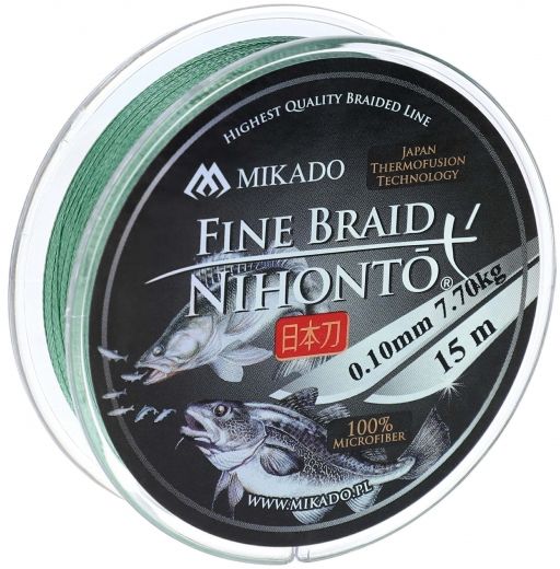 Fir Textil Mikado Nihonto Fine Braid, Green, 0.06mm, 3.25kg, 15mMikado Nihonto Fine Braid este un fir textil suplu impletit din microfibre de foarte buna calitate. Firul textil se remarca printr-o rezistenta superioara la abraziune si la nod. Impletirea sistematica a fibrelor asigura un profil rotund al firului Mikado. Datorita unei game largi de diametre, firul Mikado Nihonto Fine Braid este potrivit pentru utilizarea in majoritatea tehnicilor de pescuit. Recomandam acest fir textil in realizarea de rig-uri pentru pescuitul la crap, caras si platica.Model: Nihonto Fine BraidProducator: MikadoMicrofibre rezistenteAcoperire cu silicon ThermoFuseDiametru: 0.06mmRezistenta: 3.25kgLungime: 10mCuloare: verde (green)