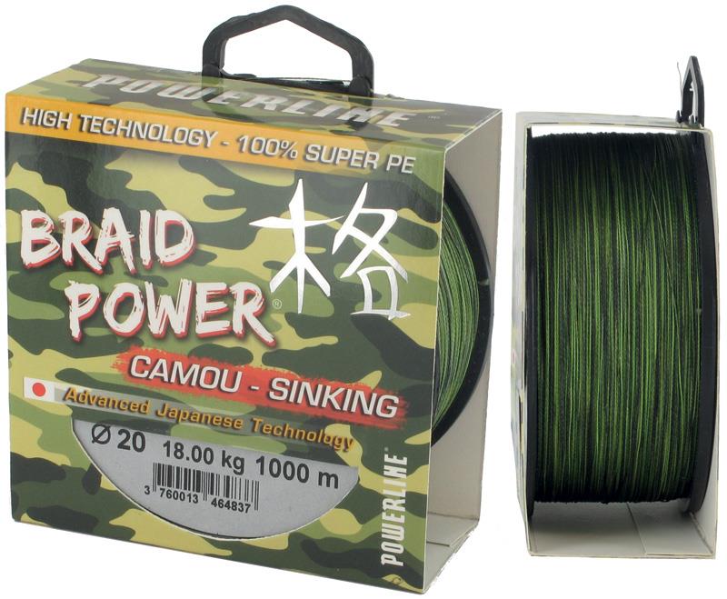 Noul multifilament Braid Power Camou este un fir matasos, rotund in sectiune, recomandat tuturor stilurilor de pescuit. Este un fir conceput conform ultimei tehnologii japoneze, fiind fabricat din fibre Super PE in proportie de 100%. Acest fir are o rezistenta sporita la abraziune si nod, fiind in acelasi timp si foarte moale. Memoria zero, culoarea( invizibil in apa datorita combinatiei verde-negru) si faptul ca este scufundator fac din acesta alegerea ideala pentru pescar, la un raport calitate pret imbatabil.