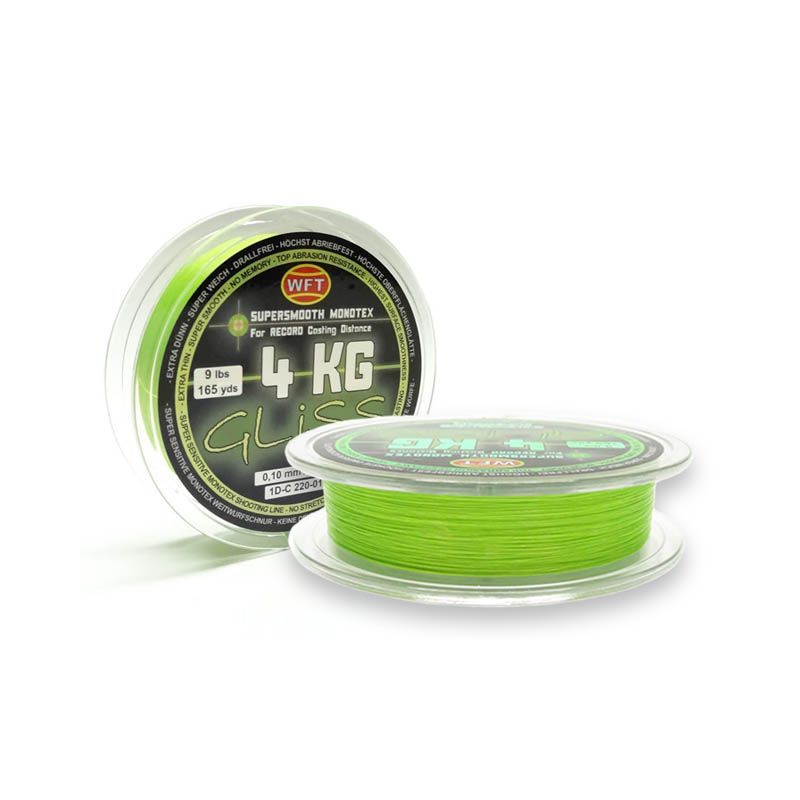 Fir Textil WFT Gliss Chartreuse 0.12mm 150m 7kg/spanDaca zgomotul provocat de traversarea firului textil prin inele este o problema peste care nu poti trece, Gliss este solutia pe care o recomandamnbsp; oricand. Bineinteles, nu vorbim de un fir doar silentios, ci si cu o rezistenta incredibil de mare raportata la diametrul propriu./span Gliss Monotex Chartreuse este noul fir revolutionar al companiei WFT, conceput din fibre 100% HMPE japoneze (polymeri + fibre textile impletite) de calitate superioara. Nu este monofilament sau fir textil impletit, nu este fluorocarbon, este un fir hibrid unic ce are rezistenta la rupere de 4 ori mai mare decat un monofilament obisnuit./span Firul are o suprafata neteda si perfect rotunda, un atu incontestabil pentru lanseurile la distanta mare. Aluneca perfect prin pastilele inelelor, de aici si numele Gliss - care inseamna a aluneca (to glide - eng.)nbsp;nbsp;/span Caracteristicile de exceptie - memorie si elasticitate zero, rezistenta la abraziune si vizibilitate sporita, rezistenta impresionanta la diametre mici permit obtinerea unor distante mari de lansare si recomanda acest fir pentru orice tehnica de pescuit, in special pentru spinning./span Specificatii tehnice:/span Tip fir: textil impletit + polymeri aplicati/spanLungime rola: 150m/spanRezistenta la abraziune/spanRezistenta la rupere;/spanRezistentanbsp;la tensionare liniara/spanElongatie nula;/spanAmplifica sensibilitatea/spanCuloare: Chartreuse/spanFabricat in Germania/spanDiametru: 0.12mm/spanRezistenta: 7kg/span