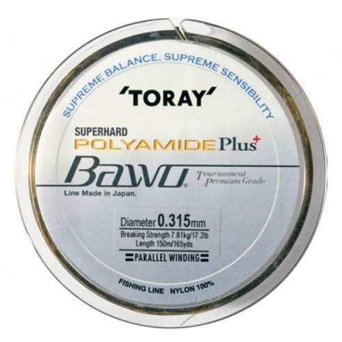 Fir Toray Bawo Polyamide Plus Olive Green 0.240mm/spanFirul TORAY BAWO POLYAMIDE PLUS - OLIVE GREEN de la Toray este realizat in JAPONIA , beneficiind de cea mai inalta tehonologie din domeniul polimerilor. Acesta este realizat din copolimeri (100% nailon), compozitie ce ii confera rezistenta sporita la rupere, rezistent la abraziune,castabilitate, diametru redus si posibilitatea de a prinde mult mai repede carligului, caracteristici intanlite la firele monofilament. Se remarca prin suplete, lipsa totala a memoriei, fara intindere, sensibilitate ridicata, predispotitie catre pescuitul cu naluci(diferite dimensiuni). Este prezentat pe role de 150m, iar firul este bobinat prin tehnologia Parallel Wound. /span