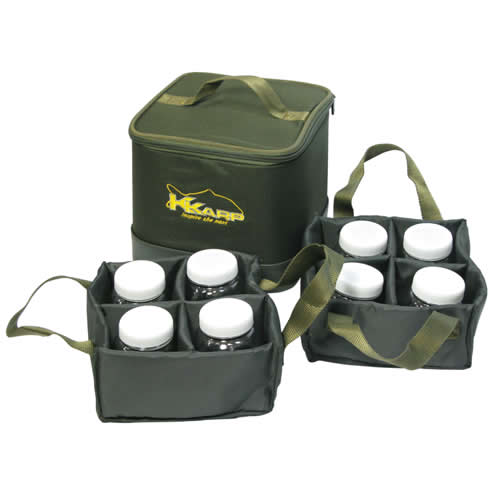 Caseta pentru pastrarea borcanelor cu dipuri.Interiorul este intarit cu buretel si captusit.Setul contine 8 borcane care sunt supraetajate in 2 compartimente detasabile. Fiecare compartiment dispune de maner sub forma de bretele din material textil.Sistemul de inchidere este pe baza de fermoar.Baza casetei este imbracata in material PVC de culoare kaki.