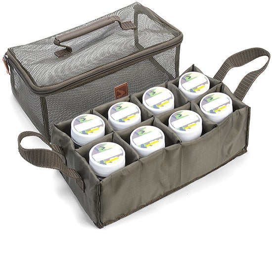 Geanta Avid Carp Hookbait Organizer Geanta speciala pentru borcanele cu momeli de carlig Se livreaza cu 8 borcane speciale din plasic pentru pastrarea momelilor Geanta este complet din plasa pentru a putea identifica cu usurinta borcanele din interior Dimensiuni: 35 x 20 x 10cm