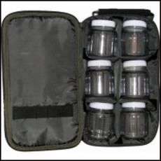 Geanta KKarp cu 6 borcane incluse pt dip-uri sau boiles de carlig cu fermoar si suport transport croseta+burghiu.