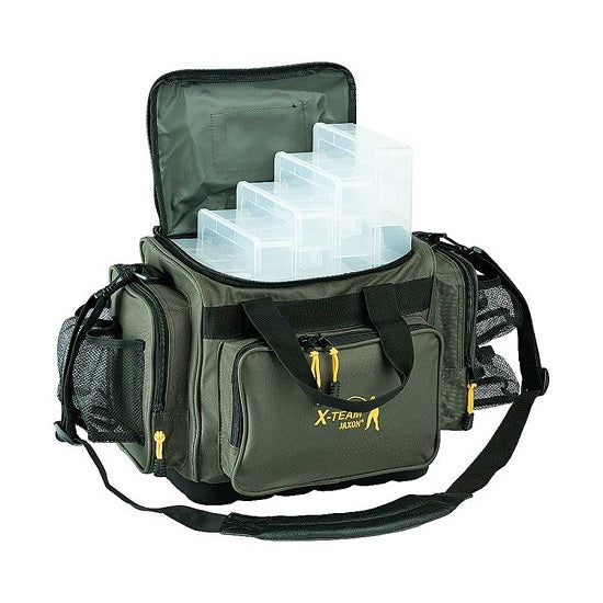 GEANTA SPINNING JAXON TEAM 5 CUTII 47x27x30CMAceasta geanta este ideala pentru depozitarea si transportarea accesoriilor de spinning.Vine echipa cu 5 cutii pentru sortarea accesoriilor.