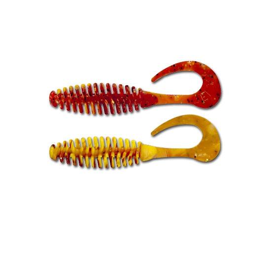 strongstrongEste un grub fabricat din cele mai moi materiale, coada sa foarte sensibila la tractiuni discrete il face foarte atractiv pentru pestii rapitori. Datorita corpului compus din rondele successive vibratia transmisa in apa este amplificata. Aceasta naluca se preteaza foarte bine la pescuitul cu montura offset, cele doua canale dispuse pe lungimea grubului permitand ascunderea sigura a varfului carligului. Consistenta materialului permite iesirea facila a varfului carligului in momentul muscaturii si implicit inteparea pestelui. Se fabrica in variantanbsp;laminat (TL), combinatia de culori fiind obtinuta din turnare cu sau fara glitter. Datorita lungimii de 11 /strongcm este recomandat pentru pescuitul salaului, stiucii si somnului, atat pe lacuri cat si pe rauri. /strong