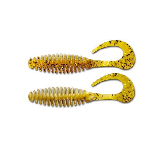 strongstrongEste un grub fabricat din cele mai moi materiale, coada sa foarte sensibila la tractiuni discrete il face foarte atractiv pentru pestii rapitori. Datorita corpului compus din rondele successive vibratia transmisa in apa este amplificata. Aceasta naluca se preteaza foarte bine la pescuitul cu montura offset, cele doua canale dispuse pe lungimea grubului permitand ascunderea sigura a varfului carligului. Consistenta materialului permite iesirea facila a varfului carligului in momentul muscaturii si implicit inteparea pestelui. Se fabrica in variantanbsp;laminat (TL), combinatia de culori fiind obtinuta din turnare cu sau fara glitter. Datorita lungimii de 11 /strongcm este recomandat pentru pescuitul salaului, stiucii si somnului, atat pe lacuri cat si pe rauri. /strong