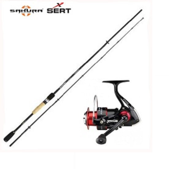 Kit Lanseta Sakura Alcantara Spinning 702MH 2.10m 14 42 g PLUS Mulineta Sert Axo FD 2003- Kit Lanseta Sakura Alcantara Spinning 702M 2.10m 7-20gr + Mulineta Sert Axo FD 2003 este format din lanseta Sakura Alcantara Spinning, lanseta ce reprezinta noutatea anului 2018 in materie de spinning. Alcantara este construita pe un blank extrem de rezistent , lucru ce o face o lanseta rapida. Sakura Alcantara Spinning este echipata cu 7-8 inele puternice , mandrina clasica iar cotorul este din pluta + EVA. Sakura Alcantara se prezinta ca o lanseta echilibrata si estetica ce isi incepe “cariera” atacand si acoperind toate ariile de pescuit la rapitor. La aceasta dotare, SakuraAlcantara Spinning este optimul solicitat de catre orice pescar de spinning. Aceste lansete au un raport calitate-pret de invidiat plus mulineta Sert Axo, o mulineta ce se pozitioneaza bine in piata prin pretul redutabil si atributele acesteia. Modelul Axo prezinta o frana frontala micrometrica, 3 rulmenti, anti-revers continuu, un tambur principal din Aluminiu si inca unul din grafit de rezerva. Lanseta - Lungime (m): 2.10 Lanseta - Numar elemente : 2 Lanseta - Actiune: Fast Lanseta - Greutate la lansare (gr/lbs): 14-42 Mulineta - Dimensiune: 2000 Mulineta - Frana: Fata Mulineta - Numar rulmenti: 3 Mulineta - Rata recuperare : 5.5:1 Mulineta - Capacitate tambur (m/mm): 290m/0.20mm Mulineta - Greutate (gr): 256
