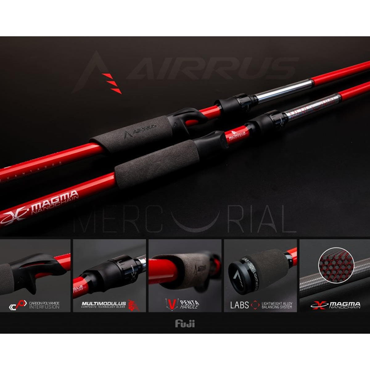 Lanseta Airrus Mercurial Red Lash Cast 2.16m, 10.5-21g, 1segDupa 38 de luni de proiectare, dezvoltare si teste, cu ajutorul celei mai inalte tehnologii disponibile in acest domeniu, inginerii din cadrul companiei Airrus Rods au creat o lanseta deosebita cu un design inovator.Echipata cu suport de mulineta de noua generatie CARBON + POLIAMIDA cu ergonomie totala care permit in acelasi timp o rezistenta mai mare si mai ales o mai buna receptie a vibratiilor datorita duritatii si densitatii acestora.Specificatii:Echipata cu suport de mulineta de noua generatie CARBON + POLIAMIDA cu ergonomie totala care permit in acelasi timp o rezistenta mai mare si mai ales o mai buna receptie a vibratiilor datorita duritatii si densitatii acestora.Sistem de rasini MAGMA NANOCHAINBlancul Multimodulus realizat pe o baza de Carbon 40 T imbunatatita cu rasina NanoTube de a treia generatie.Manere ergonomice Semi-Hexagonale pentru o suprafata de sprigin mai mare in punctele cheie.Gravare Top Quality cu laser in Eva si șurub metalic gravat cu laser.Actiuni super tunate, fiecare model avand reactii super rapide in situatii cand se pescuieste cu gume sau jiguri.Montate cu inele Fuji Fazlite cu tratament special CC pentru coroziune.Husa exclusivistaLungime: 2.16mNumar tronsoane: 1Clasa de putere: MediumPutere de aruncare: 10.5-21gActiune: Extra FastTest curbura: 8-15lbGreutate: 140gNOTA: Vă rugăm să rețineți ca datorită tipului de fibră de carbon folosit cu elasticitate foarte scăzută și conținut scăzut de rășină, aceste lansete performate nu sunt potrivite pentru începători.