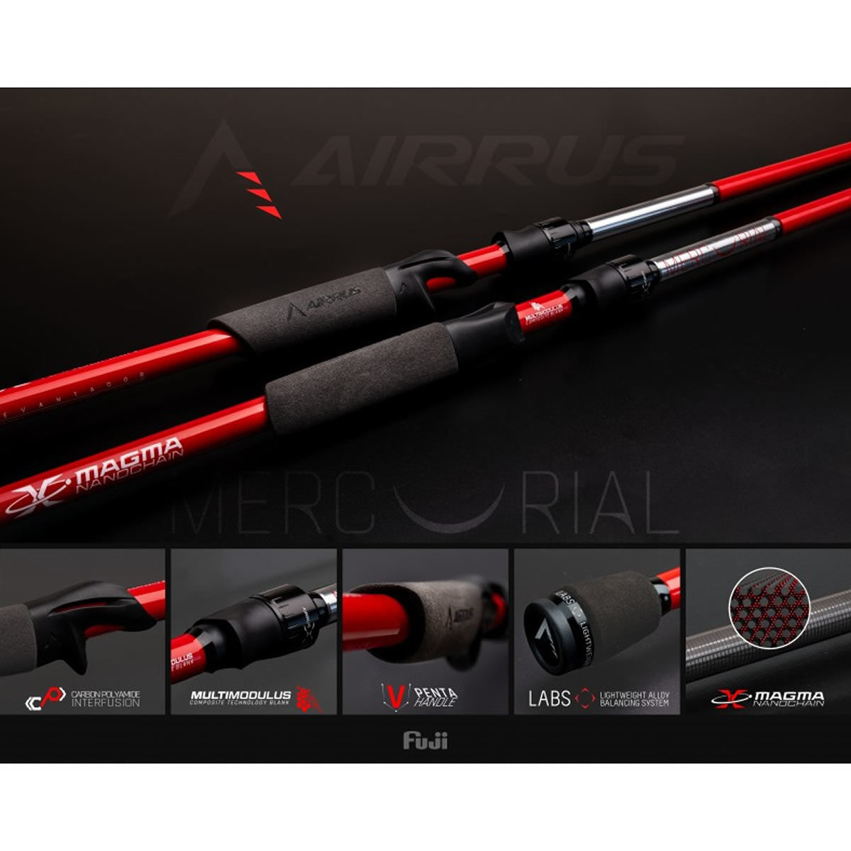 Lanseta Airrus Mercurial Swiftblade Spinning 2.13m, 5.25-17.5g, 1segDupa 38 de luni de proiectare, dezvoltare si teste, cu ajutorul celei mai inalte tehnologii disponibile in acest domeniu, inginerii din cadrul companiei Airrus Rods au creat o lanseta deosebita cu un design inovator.Echipata cu suport de mulineta de noua generatie CARBON + POLIAMIDA cu ergonomie totala care permit in acelasi timp o rezistenta mai mare si mai ales o mai buna receptie a vibratiilor datorita duritatii si densitatii acestora.Specificatii:Echipata cu suport de mulineta de noua generatie CARBON + POLIAMIDA cu ergonomie totala care permit in acelasi timp o rezistenta mai mare si mai ales o mai buna receptie a vibratiilor datorita duritatii si densitatii acestora.Sistem de rasini MAGMA NANOCHAINBlancul Multimodulus realizat pe o baza de Carbon 40 T imbunatatita cu rasina NanoTube de a treia generatie.Manere ergonomice Semi-Hexagonale pentru o suprafata de sprigin mai mare in punctele cheie.Gravare Top Quality cu laser in Eva si șurub metalic gravat cu laser.Actiuni super tunate, fiecare model avand reactii super rapide in situatii cand se pescuieste cu gume sau jiguri.Montate cu inele Fujy Fazlite cu tratament special CC pentru coroziune.Husa exclusivistaLungime: 2.13mNumar tronsoane: 1Clasa de putere: MediumPutere de aruncare: 5.25-17.5gActiune: Extra FastTest curbura: 8-14lbGreutate: 120gNOTA: Vă rugăm să rețineți ca datorită tipului de fibră de carbon folosit cu elasticitate foarte scăzută și conținut scăzut de rășină, aceste lansete performate nu sunt potrivite pentru începători.