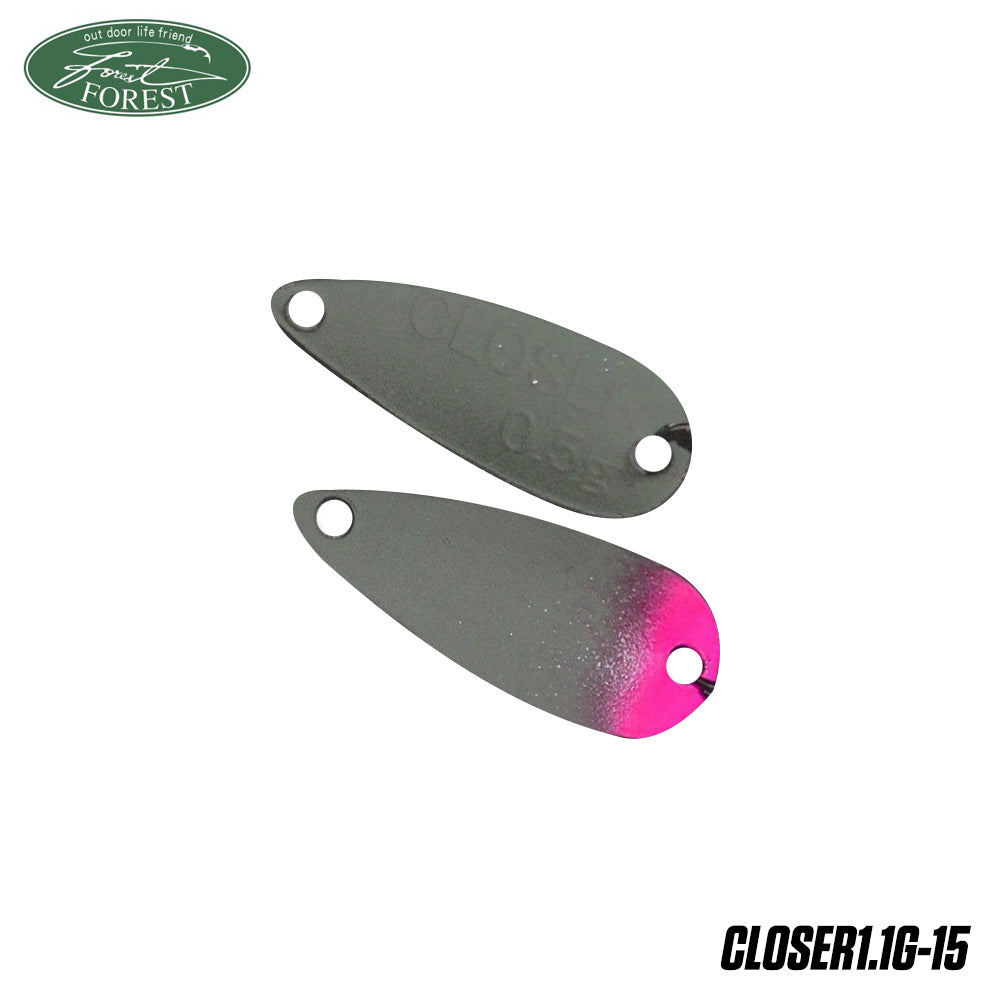 LINGURITA OSCILANTA FOREST CLOSER CULOARE ORANGE DARK GREEN RED TAIL 1.7CM 1.1GTip naluca: metalica;Model: Closer;Model lingurita: oscilanta;Lungime: 1.7cm;Greutate: 1.1g;Carlig: Nr. 8;Actiune: Rolling;