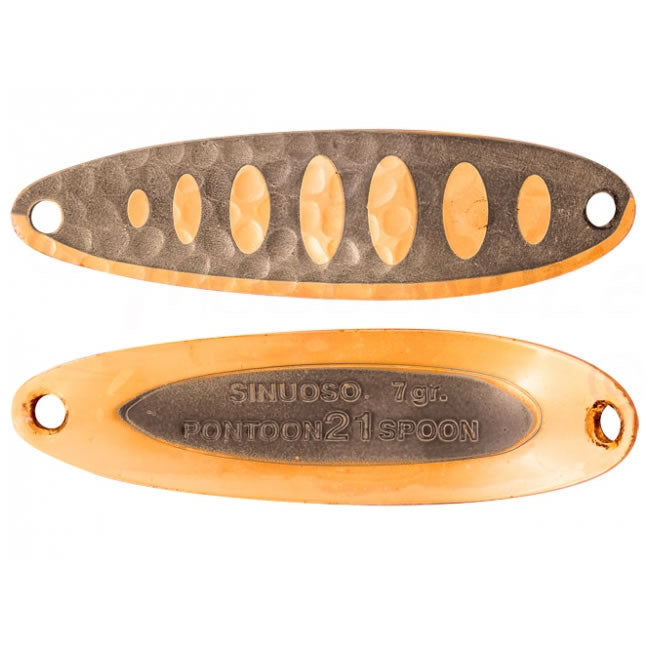 Lingurita oscilanta Pontoon21 Sinuoso Spoon 24g NC03-004Lingurile oscilante sunt cele mai vechi si mai cunoscute naluci. Pontoon21 a adaugat o noua etapa in evolutia lingurilor oscilante odata cu dezvoltarea seriei Sinuoso avand design HSMP (sensibilitate ridicata pentru presiune minima in apa). Sinuoso este capabila sa evolueze foarte bine pe fluxurile mici de apa si sa atraga rapitorii datorita actiunii agresive. Forma speciala joaca un rol important in evolutia nalucii.Dotata cu ancora Owner ST36BC