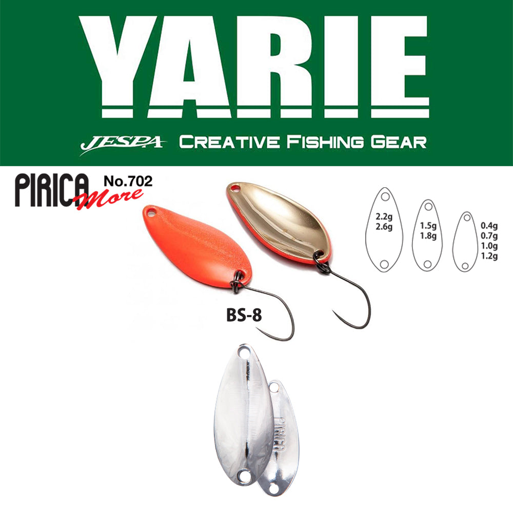 LINGURITA OSCILANTA YARIE 702 PIRICA MORE BS-8 SILVER 2.2GGreutate: 2.2gCuloare: BS-8 (Silver)Lungime: 29mmCarlig fixat cu anou despicat InoxModel Carlig: Trailer cu ochet mare - DebarbetatExtrem de stabila in curentEvolutie irezistibila pe flancuriTehnica de recuperare: lanseu in aval si cross stream (mal opus)Recomandat pentru pescuitul pastravului de rau si Trout AreaProdus realizat in Japonia