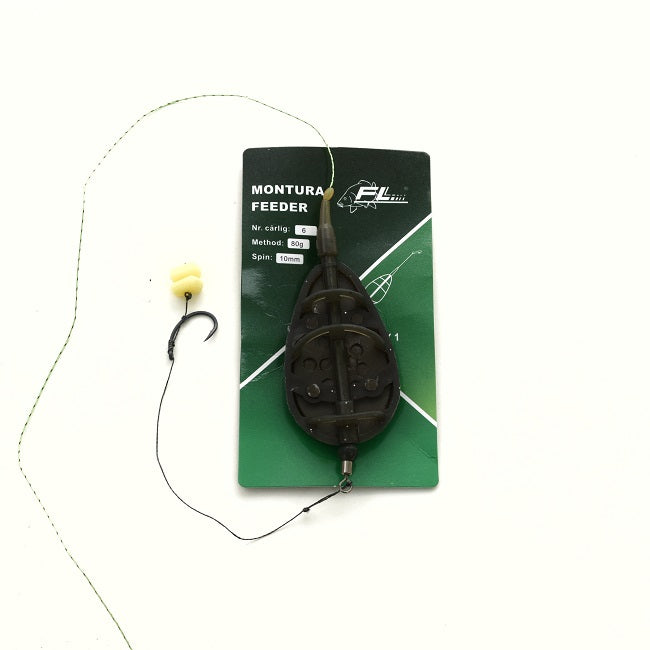 Montura Feeder FL Method fără tijă, cu o greutate de 80g, carlig nr. 6 și spin de 10mm cu porumb flotant, este potrivită pentru pescuitul la feeder în ape adânci sau cu curent puternic. Iată o descriere detaliată:1. **Fără Tijă**: Această montură este concepută fără tijă, ceea ce îi permite să fie utilizată eficient în ape adânci sau cu vegetație densă.2. **Greutate de 80g**: Greutatea de 80g oferă stabilitate monturii în apă și o permite să ajungă rapid pe fund, indiferent de adâncime sau de curentul apei.3. **Carlig Nr. 6**: Carligul de dimensiune 6 este suficient de robust pentru a prinde pești de talie medie sau mare și pentru a face față situațiilor de pescuit mai dificile.4. **Spin de 10mm cu Porumb Flotant**: Spinul de 10mm cu porumb flotant ajută la creșterea vizibilității monturii și atrage peștii în zona de pescuit.5. **Versatilitate**: Această montură este potrivită pentru diverse tipuri de pescuit la feeder și poate fi folosită cu succes în diferite condiții de apă.Această montură Feeder FL Method este o alegere excelentă pentru pescarii care caută un echipament fiabil și eficient pentru pescuitul la feeder în ape cu adâncime sau curent puternic.