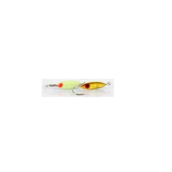 Mormasca Shark EM007091 Galben Phospho 1.40gr Carlig nr 6/spanMormasca format oval. Simuleaza alevinii - puietul de peste, tinta predilecta a rapitorilor si nu numai. Forma si greutatea asigura o coborare normala ceea ce face posibil atacul rapitorilor atat pe coborare cat si pe urcare. Prinderea se realizeaza prin gaura de la mijloc. Realizate pe cunoscutele carlige japoneze Maruto/span