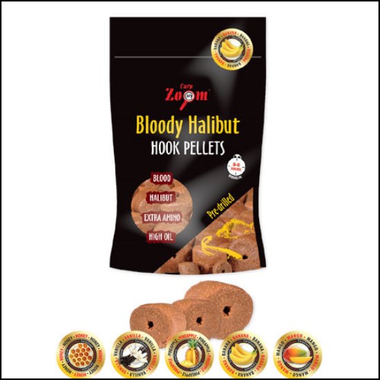 Pelete Bloody Halibut pentru carlig cu diverse arome speciale ce vor imbunatati puterea de atractie.
