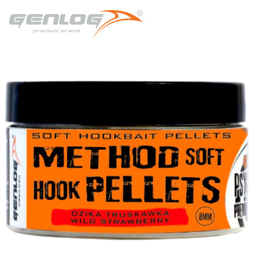 Pelete Genlog Method Soft Hook Strawberry 8mmMethod Soft Hook Pellets este noua generatie in materie de momeli destinata pescuitului modern la feeder. Asa cum sugereaza si numele, este vorba despre un pelete moale creeat cu tehnologie moderna, imbinand structura cu arome si proteine de inalta calitate pentru a obtine o atractivitate maxima.Caracteristici:- Cantitate: 60ml- Diametru: 8mm- Aroma: Strawberry