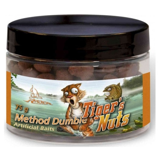 Pelete Radical Method Dumble Tiger s Nuts 8mm 75g/spanRadical propune pescarilor de crap, feeder si nu numai, o momeala deosebita. Vorbim despre un mini-boilies de forma cilindrica de 8mm ce se poate utiliza atat in monturi de tip fir de par cat si in monturi cu momitoare clasice sau method feeder. Method Dumble Tiger’s Nuts se remarca prin aroma naturala puternic imbogatita cu o cantitate bine dozata de alune tigrate clasice si negre/span