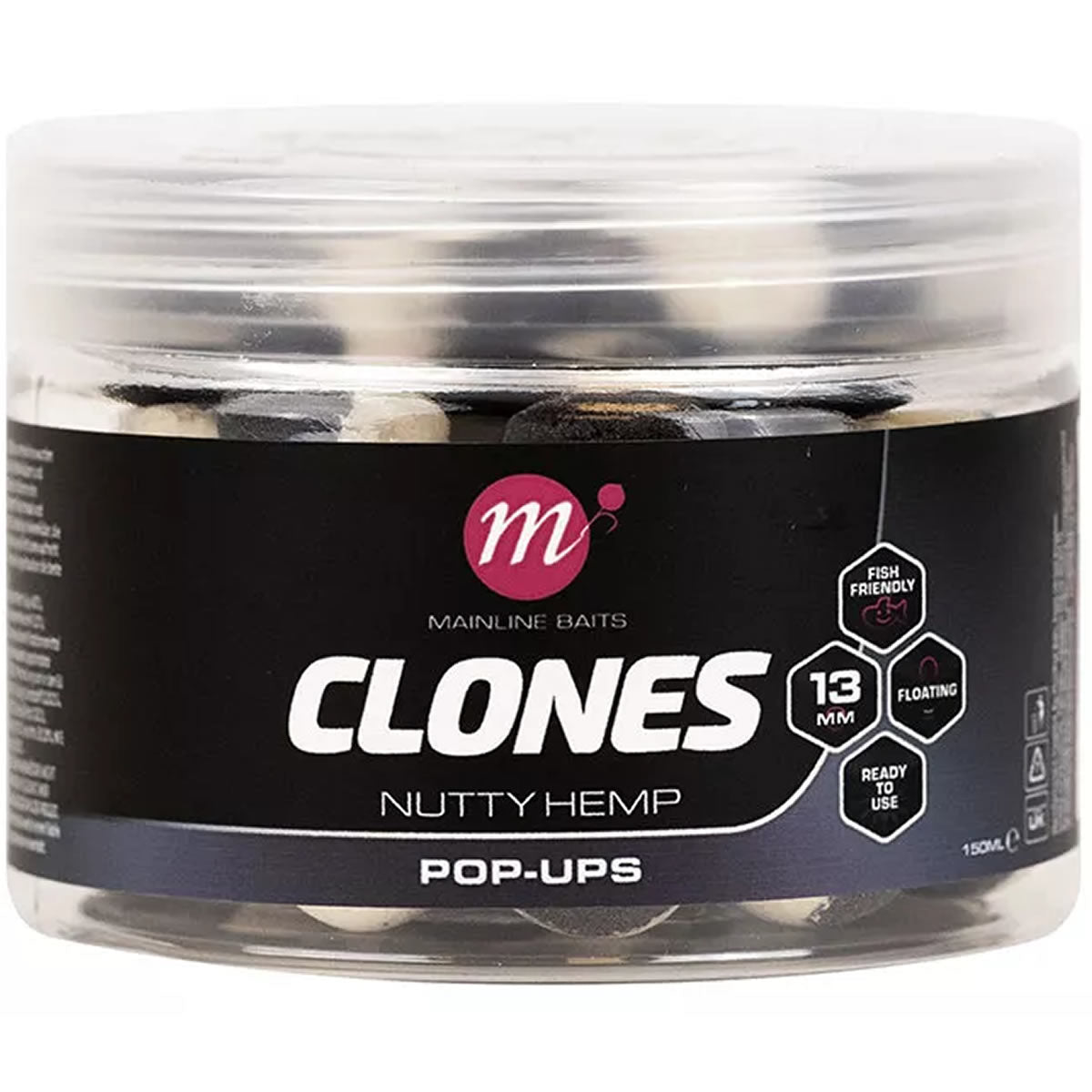 Pop Up Mainline Clones Canepa, 13mmMainline Clones sunt concepute pentru a vă oferi o momeala de cârlig rezistentă, pe care o puteți pescui peste un pat de particule care se vor potrivi atât cu culoarea, cât și cu gustul. Scopul principal al Clones, așa cum sugerează și numele, este de a „clona” orice particule sau amestec pentru spod pe care îl aruncați și de a-l reproduce într-o momeală „match the hatch”, care este mult mai practic de utilizat decât particulele în sine. Mai ales că unele particule sunt prea mici sau prea moi pentru a fi folosite efectiv pe monturile dvs. și mai ales dacă doriți să vă asigurați că momeala este încă pe firul de păr și funcționează așa cum ar trebui pentru perioade lungi de timp, momeli precum porumbul dulce, de exemplu. Clonele sunt disponibile în patru tipuri/arome diferite, în pop-up de 13 mm sau wafters de 10 mm x 14 mm. Deși sunt concepute în primul rând pentru a fi utilizate peste particule, ele s-au dovedit, de asemenea, un mare succes în toate situațiile.Nutty Hemp (Canepa):Cânepa este unul dintre cei mai mari atractori pentru pești, iar crapii adoră să mănânce această sămânță uleioasă, atât de mult încât atunci când sunt pe patul de hrănire poți vedea pete de ulei care apar la suprafață! Cu toate acestea, cânepa are și atracție vizuală, deoarece această sămânță strălucitoare maro închis/neagră iese în evidență pe fundul lacului datorită petelor albe care se formează pe măsură ce sămânța se desface și începe să încolțească. Pentru a imita acest lucru, nu numai ca gust, ci și ca aspect, pop-up-urile și wafters-urile Clones Hemp au o culoare negru închis în două tonuri și o culoare ușor murdară.
