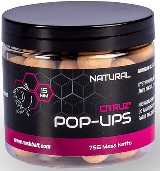 Pop Up Nash Citruz New, Natural, 20mm, 75gNash Citruz Pop Ups reprezinta o serie complexa de pop-upuri produse pentru pescuitul de crap, dezvoltate de Nash, unul dintre liderii mondiali in productia de echipamente pentru pescuit. Aceste pop-upuri sunt extrem de eficiente si atragatoare pentru crap, oferind pescarului avantajul de a obtine cele mai rapide rezultate. Unul dintre aspectele remarcabile ale acestor pop-upuri este aroma intensa de citrice. Aromele puternice si naturale ale citricelor sunt dispersate treptat in apa, creand o atractie irezistibila pentru pestii vizati. Ele au o forma sferica, cu dimensiuni si greutati precise, ceea ce le face sa pluteasca in masa apei si sa ofere un aspect cat mai natural. De asemenea, acestea sunt disponibile in mai multe culori, astfel incat pescarul sa poata alege in functie de preferintele sale si in functie de conditiile de pescuit.Nash Citruz ofera si o stabilitate remarcabila si o rezistenta crescuta la scufundare, ceea ce le face ideale pentru a fi folosite atat in combinatie cu momeli boilies sau pe langa ele. Pescarul poate fi sigur ca pop-upul se va mentine la suprafata, chiar si in prezenta curentului sau a altor factori externi. Aceste pop-upuri sunt fabricate folosind cele mai avansate tehnologii si materiale de inalta calitate, asigurand astfel o durabilitate excelenta si o functionare eficienta in orice situatie. Fiind produse de o marca renumita in industrie, aceste pop-upuri sunt testate riguros si au dovedit ca pot aduce succes si satisfactie pescarilor in toata lumea.nbAstfel, Nash CITRUZ POP UPS sunt o alegere de top pentru orice pescar pasionat de pescuitul de crap, oferind o combinatie perfecta intre aroma atragatoare si flotabilitate, pentru a obtine cele mai bune rezultate. Indiferent daca esti un pescar incepator sau avansat, aceste pop-upuri iti vor asigura succesul in capturarea crapului.Tip boilies: Pop Up Nash Citruz NewDiametru: 20mmAroma: CitriceFlotabilitate ridicataElimina aroma lentCuloare: NaturalAmbalaj: 75g