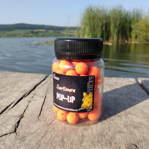 Pop-uprile sunt caracterizate de o flotabilitate ridicata si culoare fluo, la care nu poate sa-i reziste nici un crap. Pot fii folosite singure pe firul de par sau in monturi snowman. Fata de alte pop-upuri de pe piata, pe langa culoare si aroma, acestea sunt caracterizate si de indulcitorul folosit, care este un potentiator de gust extraordinar. Ambalaj: 50g popup/borcanas