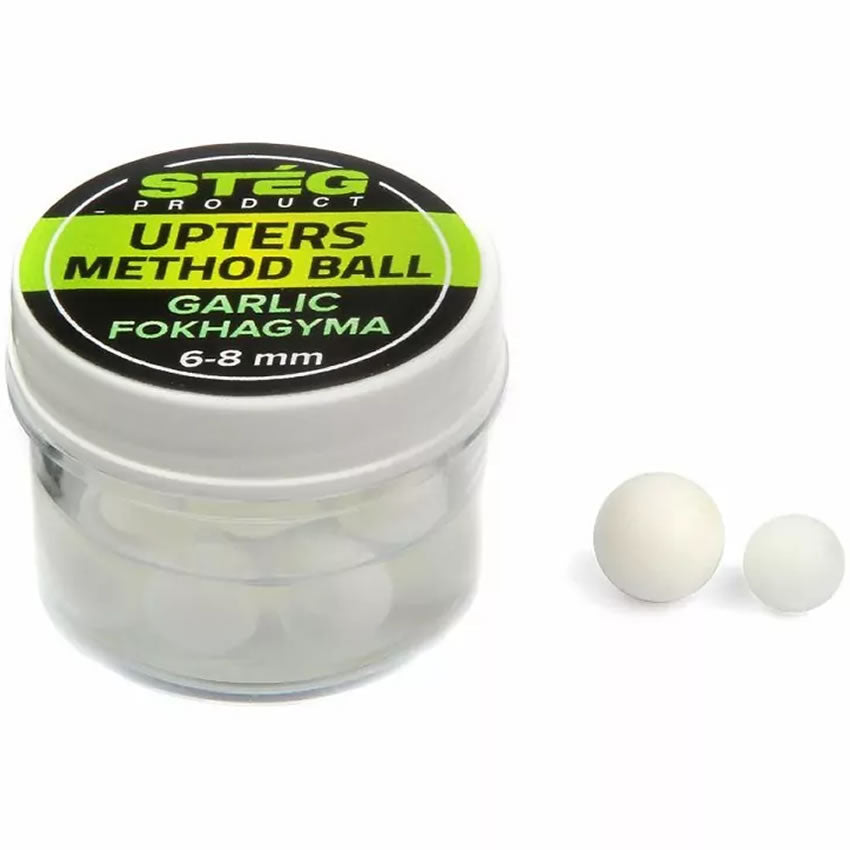Pop Up Steg Upters Method Ball, Usturoi, 8mm, 10buc/borcanSteg Method Ball sunt pop-up-uri rotunde, cu diametrul de 10mm, tinute intr-o aroma concentrata.Un mare avantaj ale acestor momeli este ca, oricat sa le apasam, sau le presam in momitor, nu le putem deterioara, fiind foarte elastice.Tip momeala: Pop-Up;Model: Upters Method Ball;Producator: Steg;Forma rotunda;Tinute in aroma concentrata;Diametru: 8mm;Aroma: Usturoi;Culoare: Alb;Mod de ambalare:: 10buc/borcan.