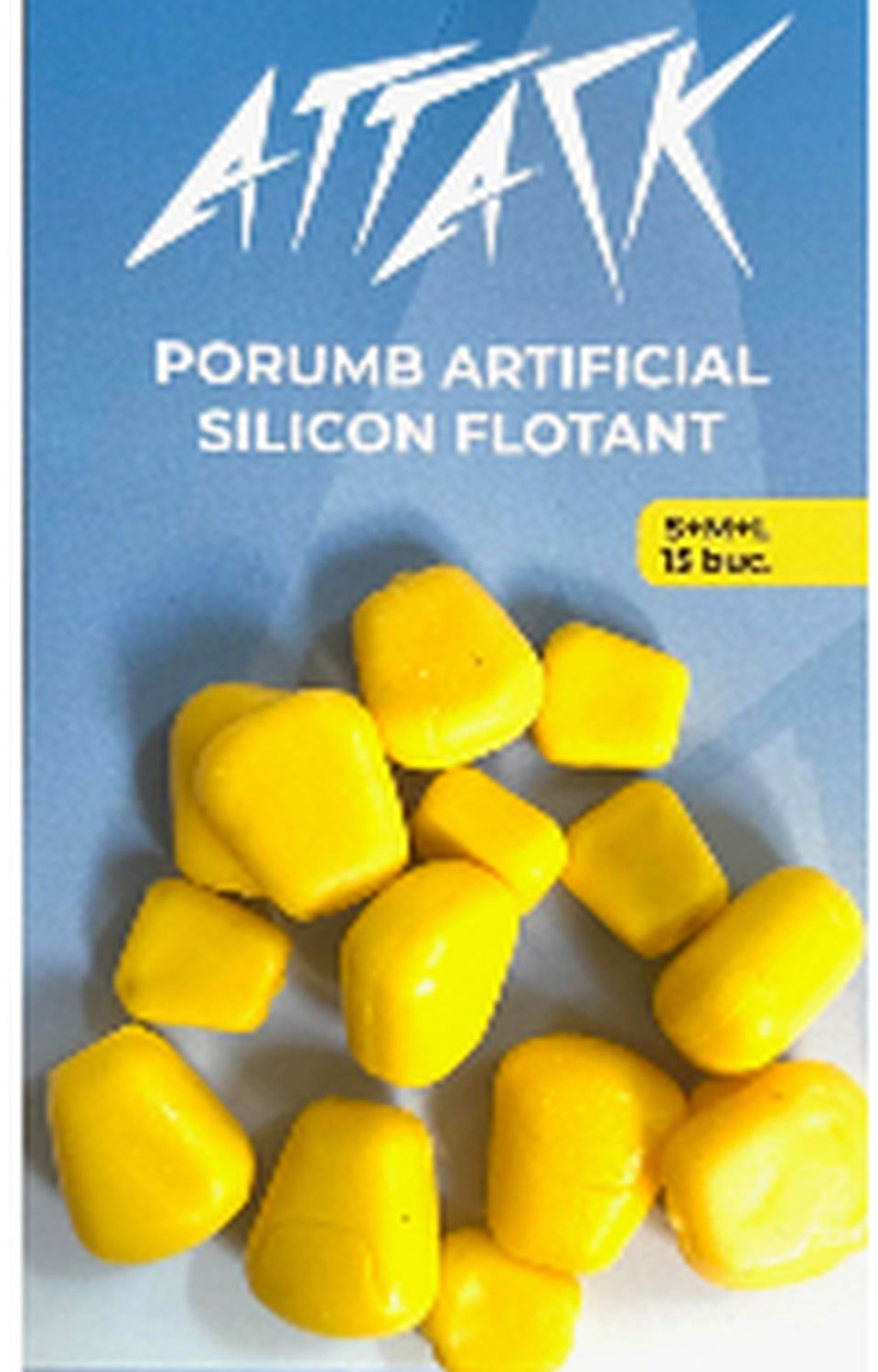 Porumb Artificial Attack Soft Silicon Floating, S+M+L, 15buc/pacMomeala artificiala Attack Soft Silicon este un produs inovator si eficient utilizat in pescuitul la crap, proiectat pentru a imita aspectul boabelor de porumb, una dintre momelile preferate ale crapului. Aceasta face parte din gama de produse Attack, un brand cunoscut pentru produsele realiste de inalta calitate, care se remarca prin detaliile sale autentice, durabilitatea si performanta sa excelenta. Porumbul este realizat din materiale de calitate superioara, rezistente non-toxice, care ii confera o durabilitate si o stabilitate excelenta in prezentarea pe substrat. Momeala are un aspect realist, imitand cu mare precizie forma si textura boabbelor de porumb, ceea ce o face atragatoare pentru crap si alte specii de pesti.Tip produs: Porumb ArtificialProducator: AttackModel: Soft Silicon FloatingMAterial: silicon rezistentDimesiuni: S+M+LFlotabilitate ridicataAroma: naturalCuloare: galben (yellow)Mod de ambalare: 15 buc/pac