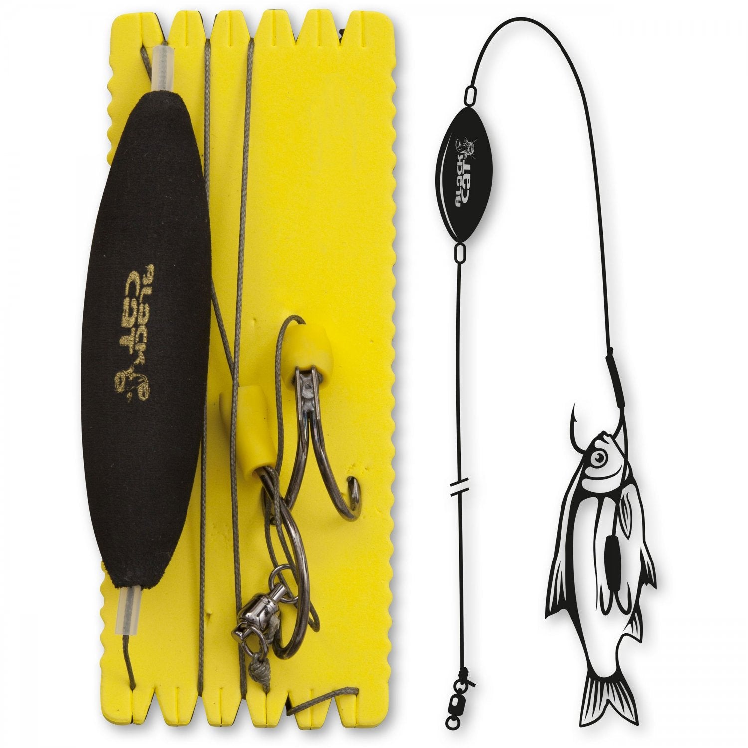 Rig Somn Black Cat 6/0 3/0 U-Float Ghost Rig LRig realizat cu leader Black Cat Powe Leader, carlig Black Cat Mega Hook, un carlig Black Cat Mega Hook, o ancora dubla Black Cat Ghost Hook si pluta Black Cat U-Float, destinat pescuitului la somn cu orice tip de momeala vie si/sau moarta. Se pot folosi pesti – caras, crap, tipar, etc., viermi de genul rame, lipitori, etc., mate, ficat, broscute, soareci, etc. Aceasta este o montura utilizabila pentru toate speciile si dimensiunile de somn. Lungimea totala a rig-ului este de 180cm, iar rezistenta la rupere este de 110 Lb. Dimensiunea carligelor folosite este cea care da clasa rig-ului – Large / Extra Large.Lider realizat special, care cuprinde un carlig, o ancora dubla si o pluta din EVA. Rig-ul de somn U-Float Ghost Rig este o montura speciala pentru pescuitul la somn in apa curgatoare. Dupa cum bine stim, somnul este un peste hapsan iar cu cat momeala din carlig este mai mare si ”puturoasa” cu atat mai bine. Somnul are vazul slab dezvoltat, ghidandu-se in special dupa miros iar numarul mare al ramelor, lipitorilor sau altor momeli vii/ moarte agatate in carlig ii vor stimula la maxim simtul olfactiv.