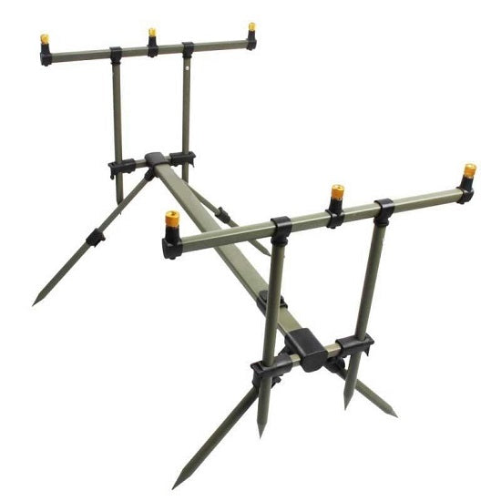 Corpul si picioarele sunt ajustabile,ceea ce fac ca acest rod pod sa fie foarte versatil. Buzzbarii sunt pentru 3 posturi si si se pot folosi si separat. Este construit din aluminiu,ca si buzzbarii,de aceea este foarte usor,dar constructia lui simpla si robusta il fac deosebit de stabil. /spanCaracteristici : Lungime : 72 - 122 cm. Inaltime : 44 - 77 cm. Dimensiuni transport : 78 x 25 cm. Greutate : 3 kg. Geanta de transport /span