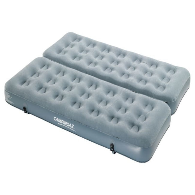 Saltea Campingaz Convertible 4 in 1Saltelele Campingaz sunt moi la atingere dar rezistente si elastice si pot fi folosite atat in interior cat si un exterior pentru un somn de noapte odihnitor.Acest model ofera 4 modalitati in care poate fi utilizata putandu-se adapta la nevoile utilizatorului.Caracteristici:- valve duble;- material: PVC durabil;- structura cu arcuri interioare;- grosime PVC: 0.33mm;- PVC texturat pe partea utilizabila;- Kit de reparare inclus;- Snap ’N’ Stay sistem de prindere a celor 2 saltele;- dimensiuni: 2 x L188 x W74 x H19cm;- greutate: 3.3kg;