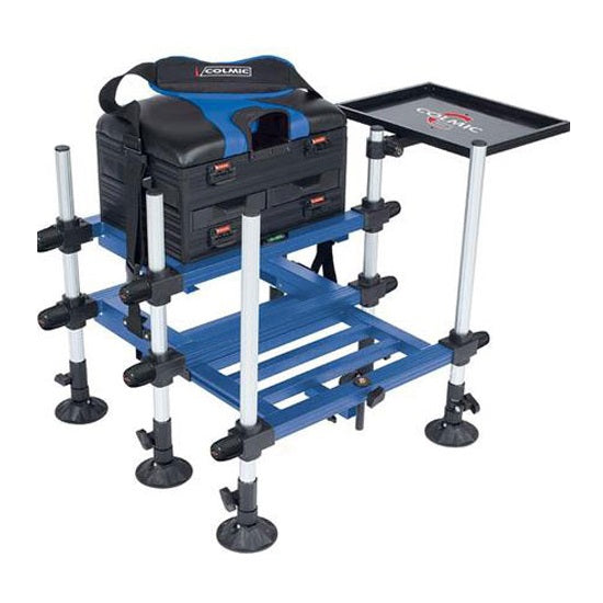 Scaun Modular Colmic Hurricane Super Light Dimensiuni tava laterala: 41x32cm; Suport pentru juvelnic; Curea de umar ergonomica; Nivela laterala si frontala pentru verificarea orizontalitatii. Sezut confortabil din piele cu aspect Carbon; 1 x sertar lateral cu dimensiunea: 25x39.3.5cm; 2 x sertare frontale cu dimensiunea: 17x27x.3.5cm; 1 x compartiment pentru riguri cu inaltimea de 3.5cm; 4 x picioare telescopice cu dimensiunea: 60cmx30mm; 2 x picioare telescopice pentru tava laterala;