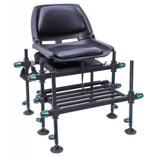 Scaun modular Mikado Method Feeder UltimateMethod Feeder Ultimate este un scaun modular, conceput si dezvoltat de catre echipa Mikado, pentru pescarii ce isi doresc un echipament competitiv, la un pret avantajos. Modularul prezentat de catre echipa poloneza, se remarca, atat prin structura, cat si prin nivelul de confort oferit.Desi designul este unul clasic, noul model nu face rabat de la echiparile de ultima generatie, precum sistemele prindere, sau adoptarea unui sezut rotativ, cu spatar ergonomic.Cadrul scaunului modular Method Feeder Ultimate este realizat din aluminiu, finisat cu un strat protector de vopsea neagra, oferind un aspect clasic, dar si durabilitate in fata actiunii corozive a apei, si, nu in cele din urma, o rezistenta crescuta la eventualele socuri mecanice aparute pe durata transportului.Structura iese in evidenta prin masa totala, valoarea fiind una redusa, aspect ce se va resimti imediat la transport. Scaunul este dotat cu sase picioare telescopice, cu un diametru de 25mm. Acestea pot fi reglate pe inaltime, intr-un mod foarte eficient si rapid. De asemenea, picioarele sunt prevazute cu talpici anti-noroi, ce vor ajuta la plasarea scaunului pe un teren mai putin prietenos. Remarcabil, in comparatie cu alte modele disponibile pe piata, este prezenta platformei integrate, ideala pentru pozitionarea picioarelor. Cunoscuta tehnic sub numele de padanta, aceasta platforma va aduce o serie de avantaje pescarului de feeder. Sistemul ingenios favorizeaza culisarea pedantei sub structura scaunului, aducand un plus de confort, din nou, in ceea ce priveste transportul.Cele sase picioare favorizeaza si plasarea scaunului modular in apa, doua dintre acestea stabilizand scaunului pe mal, si celelalte patru transformand scaunului intr-un mic ponton de pe care putem aborda partida de pescuit dupa bunul plac. In plus, pozitionarea pe verticala si diametrul de 25mm, va permite atasarea unui numar variat de accesorii dedicate, precum brate de feeder, adaptori pentru juvenlic, angulatori de feeder, suporti de lansete, sau orice alt accesoriu ce se poate atasa la picioarele scaunului.Sezutul scaunului Mikado Method Feeder Ultimatum este detasabil, ergonomic si realizat pentru a sustine coloana vertebrala intr-o pozitie anatomica corecta.Imbatabil ca pret, practic, rezistent, si compatibil cu toate accesoriile dedicate scaunelor modulare, Mikado Method Feeder Ultimate, este un model ce se adreseaza tuturor pescarilor aflati in cautarea unui astfel de echipament.Talpici anti-noroi;Cadru robust;Sezut foarte confortabil;Compatibil cu toate accesoriile dedicate scaunelor modulare;6 x picioare telescopice;Diametru picioare: 25mm;Greutate: 9.5kg ( fara picioare );Dimensiuni: 120x79x77cm;Dimensiuni transport: 79x57x50cm;Sarcina maxima admisa: 120kg.