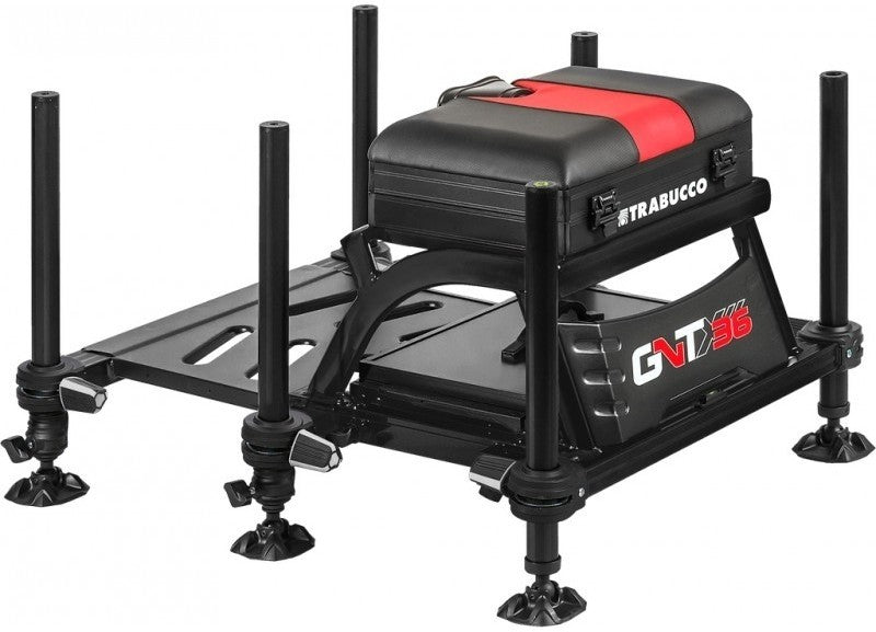 SCAUN MODULAR TRABUCCO GNT-X36 STATION BASE BLACKGNT X36 Station Base este unul dintre modelele de scaune modulare premium, cu un design modern, si echipari ce pun la indemana pescarului de feeder mai mult decat suficiente solutii pentru un pescuit profesional, relaxat, directionat catre dezvoltarea constanta a tehnicilor.Modelul in cauza este realizat pe un cadru din aluminiu, fapt ce asigura, atat o greutate redusa, cat si un transport relativ facil.Seria X36 GNT a fost gandita sa acapareze atentia inca de la prima vedere, o inspectie mai amanuntita dezvaluind toate aspectele ce motiveaza in achizitionarea unui astfel de model de scaun modular. Remarcabil si inovator, este sistemul de blocare al picioarelor, fiind usor de utilizat prin intermediul unor butoane active pe arc de 180 de grade. Implicarea unui astfel de sistem adauga stabilitate pe orice tip de teren, fara a limita pescarul atunci cand vine vorba de pescuit in afara baltilor amenajate antropic.Material cadru: aluminiu de inalta calitate;4 x picioare telescopice + 2 picioare fixe;Diametru picioare: 36mm;Suruburi de blocare ergonomice;Echipat cu talpici anti-noroi cu diametru mare;Sistem de tip boloboc pentru pozitionare corecta pe orice teren;Suport pentru picioare rabatabil;Scaun cu gel,captusit,prevazut cu fanta frontala pentru rubeziana;Numeroase sertare pentru accesorii incluse;Curea de umar captusita, reglabila;Culoare: Black ( Negru ).Dimensiuni la transport ( in cutie ): 74 x 56.5 x 42.5cm;Greutate neta: 15kg.