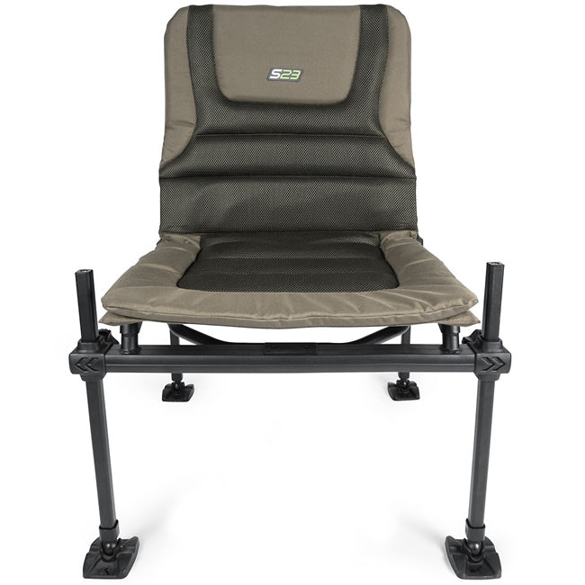 Korum S23 Standard Accessory Chair este un scaun dedicat pescuitului la feeder. Cu ajutorul caracteristicilor de care beneficiaza, scaunul de feeder Korum S23 Standard isi indeplineste rolul prestabilit, de a oferi un confort excelent in partidele de pescuit la feeder. De asemenea, in afara de confort, confera si o practicabilitate exceptionala, in comparatie cu celelalte scaune de feeder existente pe piata actuala. Primul aspect unic, ce va fi observat inca de la prima vedere va fi designul minimalist, scaunul beneficiind de un finisaj unic, intr-un stil elegant si modern. Este construit pe un cadru metalic, ce ii confera o rezistenta exceptionala impotriva uzurii. Nu numai ca elimina posibilitatea deteriorarii partilor metalice, dar ii si confera scaunului un design estetic foarte placut. Un alt aspect extrem de important este materialul textil 600D si cel de tip plasa din care este confectionat atat spatarul, cat si sezutul scaunului, ce beneficiaza de o rezistenta exceptionala impotriva apei. Cusaturile sunt extrem de bine lucrate, iar spuma aflata in interiorul materialului textil va oferi un nivel de confort ridicat in cadrul sesiunilor de pescuit la feeder. Korum S23 Standard Accessory Chair este un scaun cu picioare pe profil patrat, ce permite atasarea a multiple accesorii(brat feeder, suport pentru umbrela, angulator sau suport de lanseta, etc.).Picioarele de 50cm nu sunt telescopice, dar sunt ajustabile, putand fi pozitionate conform preferintelor pescarului. Datorita acestui fapt, dar si a talpicilor anti-noroi pe profil patrat, scaunul poate fi asezat extrem de facil pe un teren moale sau denivelat. Designul compact cu care este prevazut va facilita atat transportul, cat si depozitarea acestuia. Korum S23 Standard Accessory Chair este un scaun de pescuit la feeder adaptat nevoilor si cerintelor actuale. Greutatea redusa, modularitatea ridicata si stabilitatea datorata conceptului pe profil patrat de 23mm, sunt in ziua de astazi necesitati pe care Korum S23 Standard Accessory Chair le indeplineste cu succes. Caracteristici: Varianta standard;Design unic si elegant;Confort sporit;Picioare ajustabile;Sezut si spatar captusite;Construit pe cadru metalic;Greutate redusa;Profil patrat;Talpici ajustabile, anti-noroi;Permite atasarea a diverse accesorii;Transport facil;Rezistenta si durabilitate sporita;Material spatar si sezut: 600D si plasa;Diametru picioare: 23mm;Lungime picioare: 50cm; Culoare: Khaki.