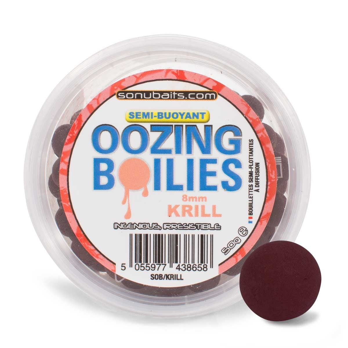 Semi Buoyant Oozing Boilies Sonubaits KrillBoiliesuri speciale semi flotante (critic echilibrate) aditivitate suplimentar cu aroma si stimulatori de apetit. Concepute sa elimine treptat atractanti in zona carligului. Foarte eficiente pe lacurile slab populate, cu presiune mare din partea pescarilor sau in perioadele in care pestii se hranesc apatic. Diametrul este de 8mm. Disponibile in diferite arome si culori de mare atractie. Folosite cu mare succes la crap, platica sau caras. Cantitate: 50g