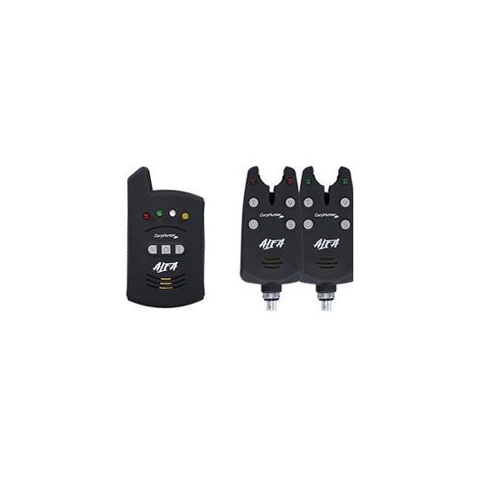 Set Avertizoare Carp Hunter Alfa 2 plus 1Carp Hunter Alfa este un set de avertizori de noua generatie cu statie radio. Avertizorii semnalizeaza atat trasatura pe tragere cat si trasatura pe cadere (cu swinger).Caracteristicile unitatii de receptie:- Butonul central ON/OFF- Butonul V regleaza intensitatea volumului;- Al saselea nivel de pe butonul V activeaza functia de vibratie;- Butonului T regleaza tipul tonului;- 6 trepte de volum si tonuri diferite.- Raza de actiune: 200m.Caracteristicile avertizorului:- Buton ON/OFF;- Butoane de volum si ton care functioneaza identic cu butoanele de pe receptor;- Butonul S regleaza sensibilitatea la tragere;- Filetul de pe avertizoare compatibil cu toti suportii existenti;- Baterie de 9V atat pentru statie cat si pentru avertizor;- Rezistent la ploaie;- Conector cu stecher de 2.5mm pentru introducerea swingerul electric.Poza este informativa, apartine modelului cu 4 avertizori.