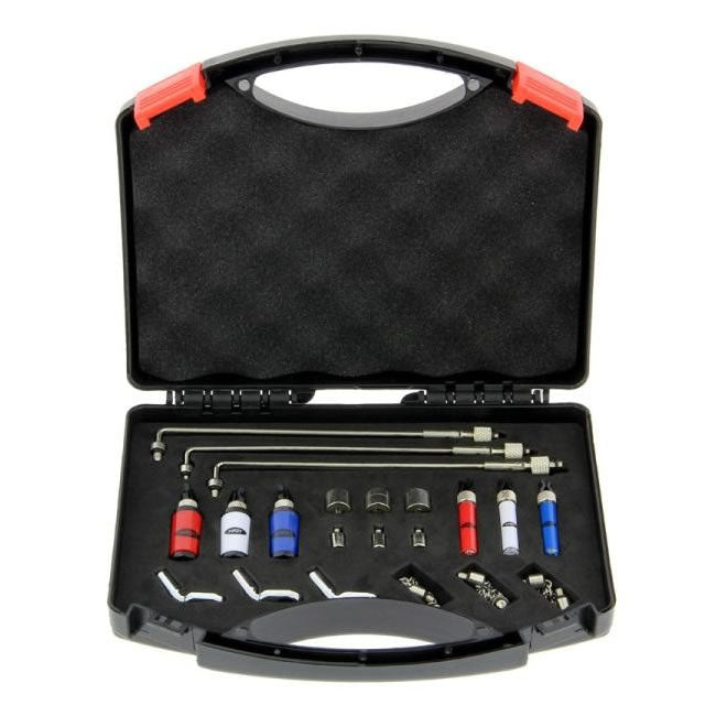 SET NGT COMPLET DELUXE MIDI/MAXI DE INDICATORI IN CASETADescrierea produsului :Un set complet de indicatori deluxe(swingere si hangere),midi/maxi livrati in caseta (cu un nou format acum fiind mai subtire si mai compacta).Aceasta noua prezentare,robusta si model deluxe contine :3 brate swinger din inox3 capete maxi (rosu,alb,albastru)3 capete midi (rosu,alb,albastru)3 greutati mari3 greutati mici3 dispozitive prindere,tip crosa hockey,din inox3 lanturi inox pt.hangere