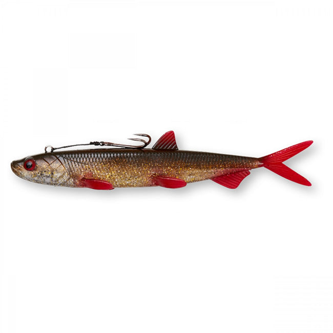 Shad Madcat Pelagic Cat Lure Satl N Pepper Sinking 21cm 100 grPescuitul de somn tocmai a devenit mult mai ușor cu ajutorul acestui super-realist și incredibil de detaliat shad care a fost special conceput doar pentru acest scop. Cu un fir inaintas ascuns în interiorul capului pentru a nu speria somnul suspicios, Madcat Pelagic Cat Lure cade repede, are miscari drepte ca o săgeată și atârnă orizontal în zona de atac. Cârligul dublu super-puternic 6X este ținut în poziție cu ajutorul unui suport mic, încorporat in interiorul acestuia cu un cârlig magnetic. Somnul și uneori salaul ataca atât de tare si de adanc această nălucă astfel incat dezgatarea devine foarte dificilă - acest cârlig dublu nu ramane blocat în corpul nalucii. Shadul are de asemenea un plus de aroma, de miros pentru a atrage somnul de la distante foarte mari. Dimensiune 21cm
