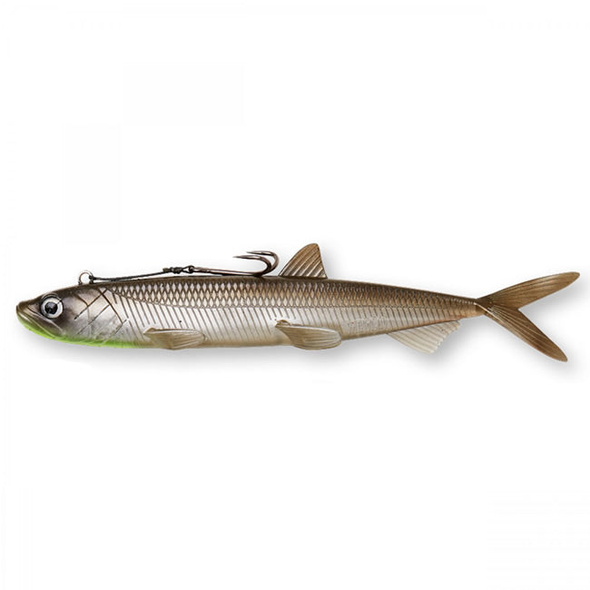 Shad Madcat Pelagic Cat Lure Smelt Sinking 21cm 100 grPescuitul de somn tocmai a devenit mult mai ușor cu ajutorul acestui super-realist și incredibil de detaliat shad care a fost special conceput doar pentru acest scop. Cu un fir inaintas ascuns în interiorul capului pentru a nu speria somnul suspicios, Madcat Pelagic Cat Lure cade repede, are miscari drepte ca o săgeată și atârnă orizontal în zona de atac. Cârligul dublu super-puternic 6X este ținut în poziție cu ajutorul unui suport mic, încorporat in interiorul acestuia cu un cârlig magnetic. Somnul și uneori salaul ataca atât de tare si de adanc această nălucă astfel incat dezgatarea devine foarte dificilă - acest cârlig dublu nu ramane blocat în corpul nalucii. Shadul are de asemenea un plus de aroma, de miros pentru a atrage somnul de la distante foarte mari. Dimensiune 21cm