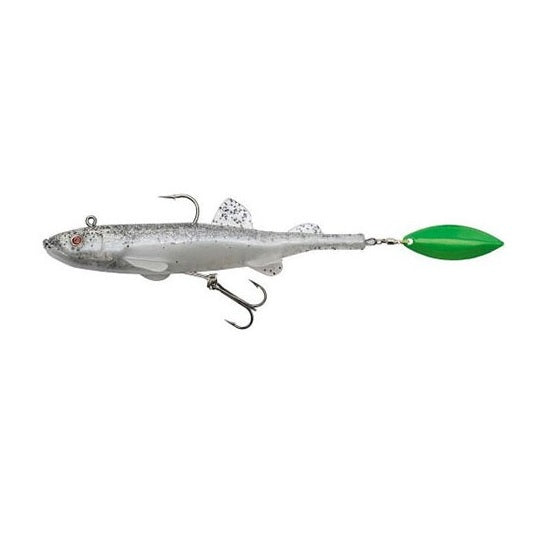 Shad Quantum Rubber Duck 17g 15cm Salt N pepperNaluca Quantum Rubber Duck Shad este rezultatul celebrului Smelt Shad inbunatatit si echipat cu un jig si o ancora VMC, iar in loc de coada cu o rotativa pentru a trezi mai eficient interesul rapitorilor. Rotativa este montata in corpul shadului cu un stinger flexibil pe jig, cu care nu isi pierde din flexibilitate. Cu aceasta naluca puteti pescui efficient la stiuca, salau, biban, pastrav, lostrita