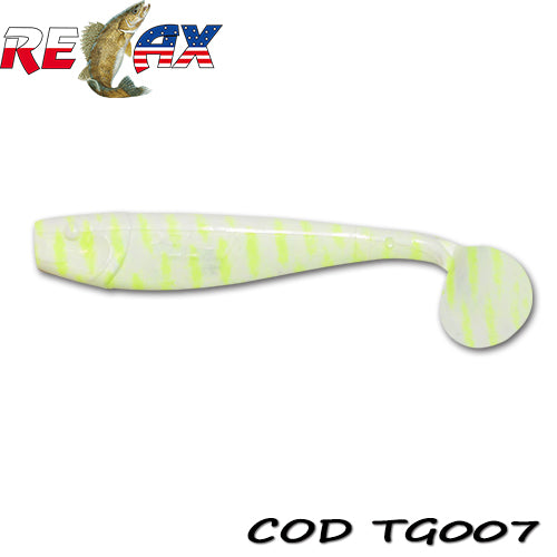 Shad Relax King Shad 10CM Tiger TG007Asa cum reiese si din denumire, este regele shadurilor. Materialul extrem de moale, forma corpului si coada mai mare decat a shad-ului obisnuit, o fac sa evolueze mai atractiv, vibratia cozii fiind obtinuta la cele mai discrete miscari ale varfului lansetei. Datorita materialului moale din care este fabricata, naluca poate fi folosita cu succes pe monturile offset, consistenta materialului permitand iesirea facila a varfului carligului in momentul muscaturii si implicit inteparea pestelui. Se fabrica in culori laminate (LC) combinatia de culori fiind obtinuta din turnare, cu sau fara glitter, avand o inima (miez) dintr-o culoare diferita de celelalte. Lungimea de 10 cm o recomanda pentru pescuitul salaului, stiucii si somnului, pe lacuri si rauri. Datorita procesului de fabricare a acestor naluci (prin turnarea a doua culori o data) exista posibilitatea ca produsul final sa difere de cel afisat in poza. De asemenea pot exista diferente intre nalucile din acelasi pachet.